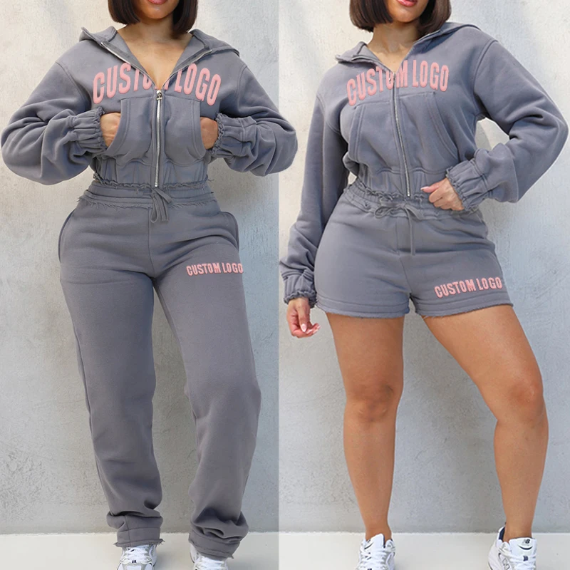 Custom Tracksuits Heavyweight Cotton French Terry Vintage Distressed Hoodie Shorts 460gsm Jogger Women Hoodie and Sweatpants Set